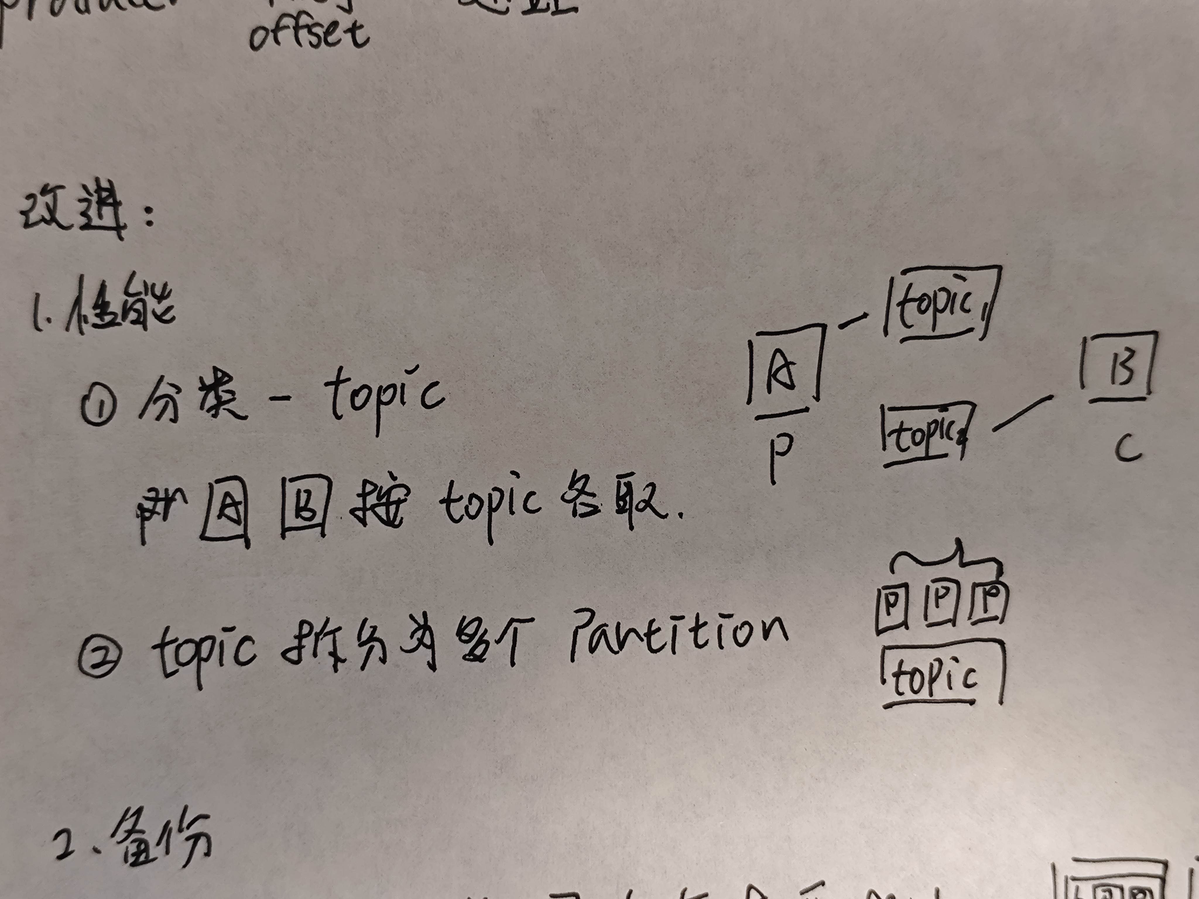而后,假设一个topic的信息太多,一台机器可能处理不过来,因此我们把topic拆分成若干个partition(就像一个大蛋糕吃不下,但是我们可以切成小块分给别人),这样也能提高信息的处理效率。 存放数据的机器我们可以称之为broker,多个broker能够缓解单台broker的性能压力。